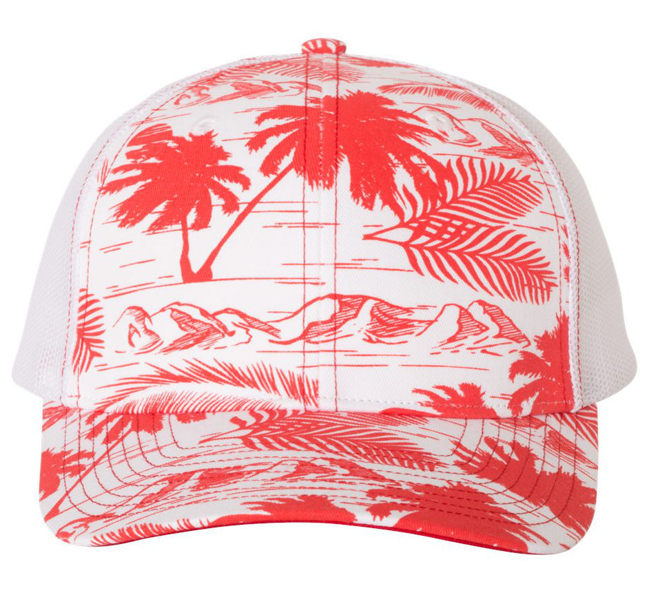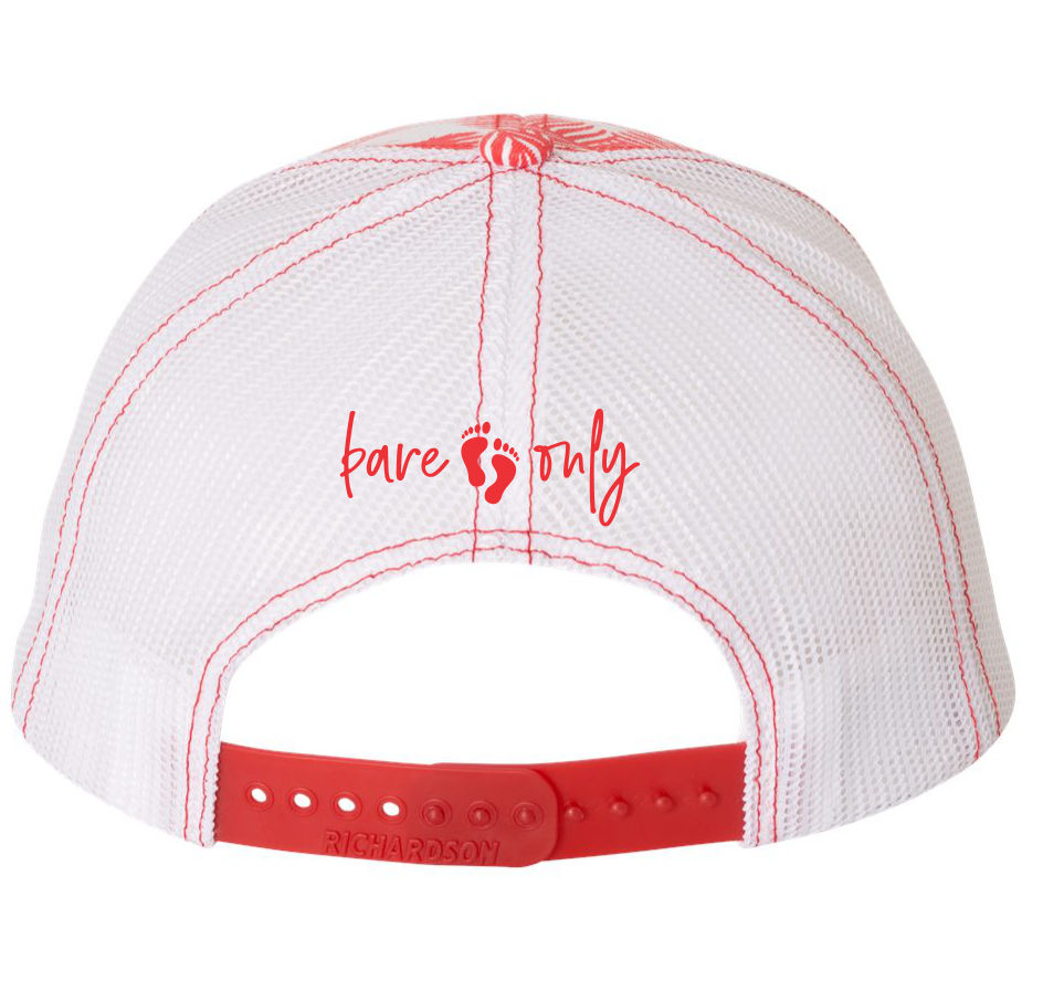 Bare Feet Only Red Island Print Trucker hat - Bare Feet Only logo embroidered on back.