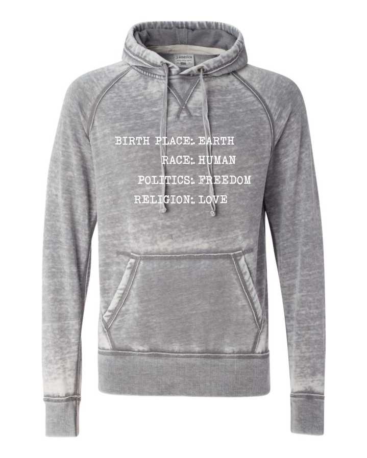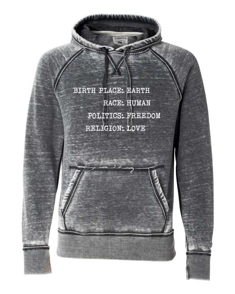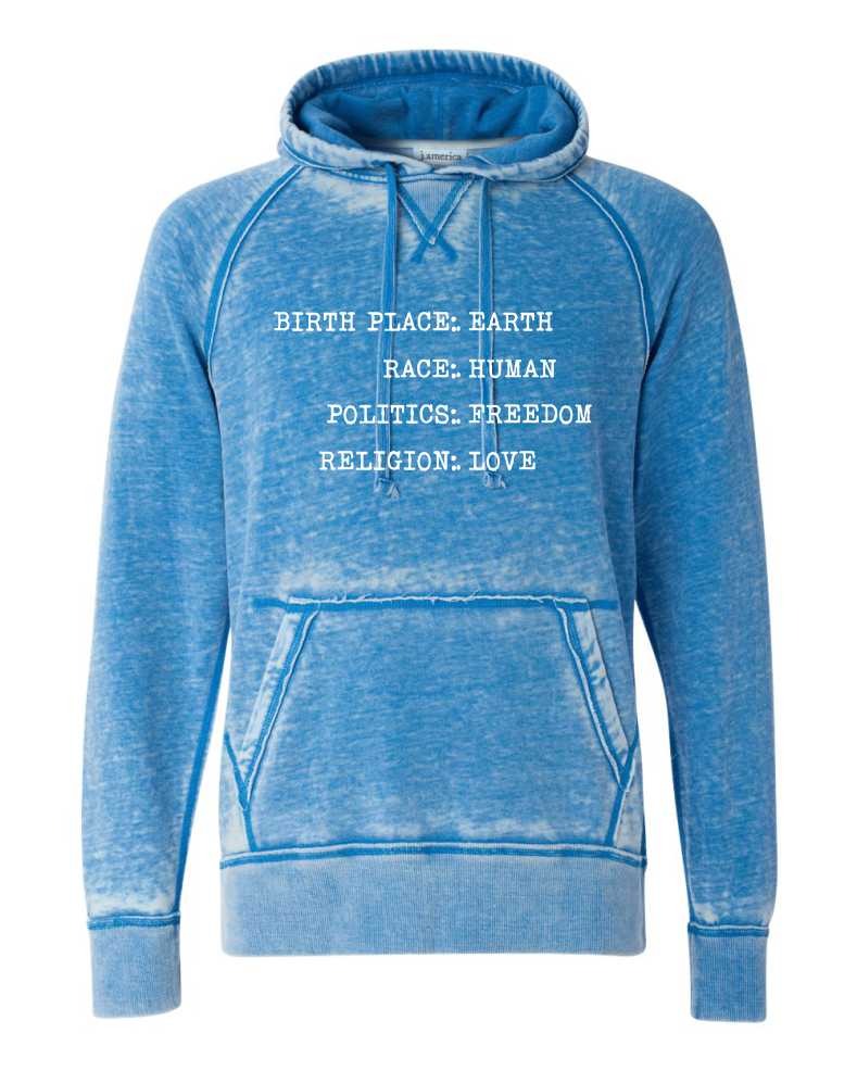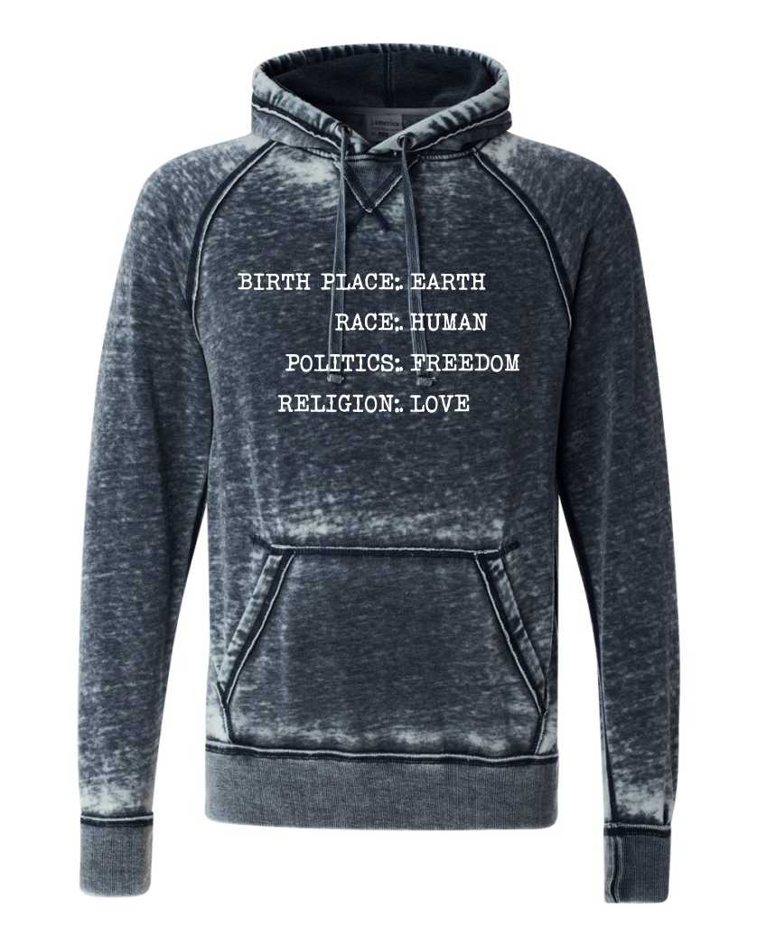 Birthplace: Earth Race: Human Politics: Freedom Religion: Love softstyle vintage hoodie