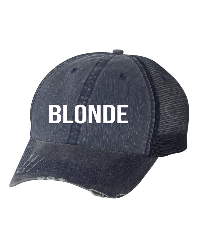 Blonde Embroidered Navy Trucker Hat