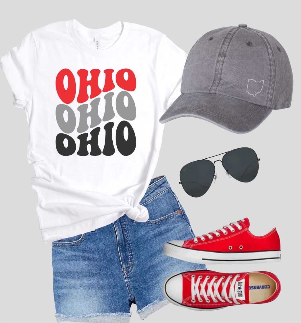 Product Description Buckeyes Color Groovy Ohio Softstyle Tee 100% combed and ring spun cotton Unisex Tee