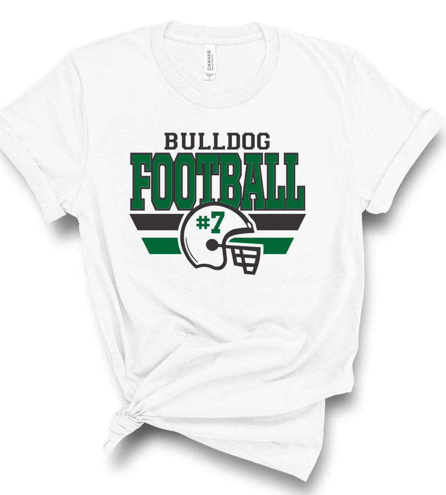 Show your Bulldog Pride with our Bulldog Football Custom Player Number Softstyle Tee.