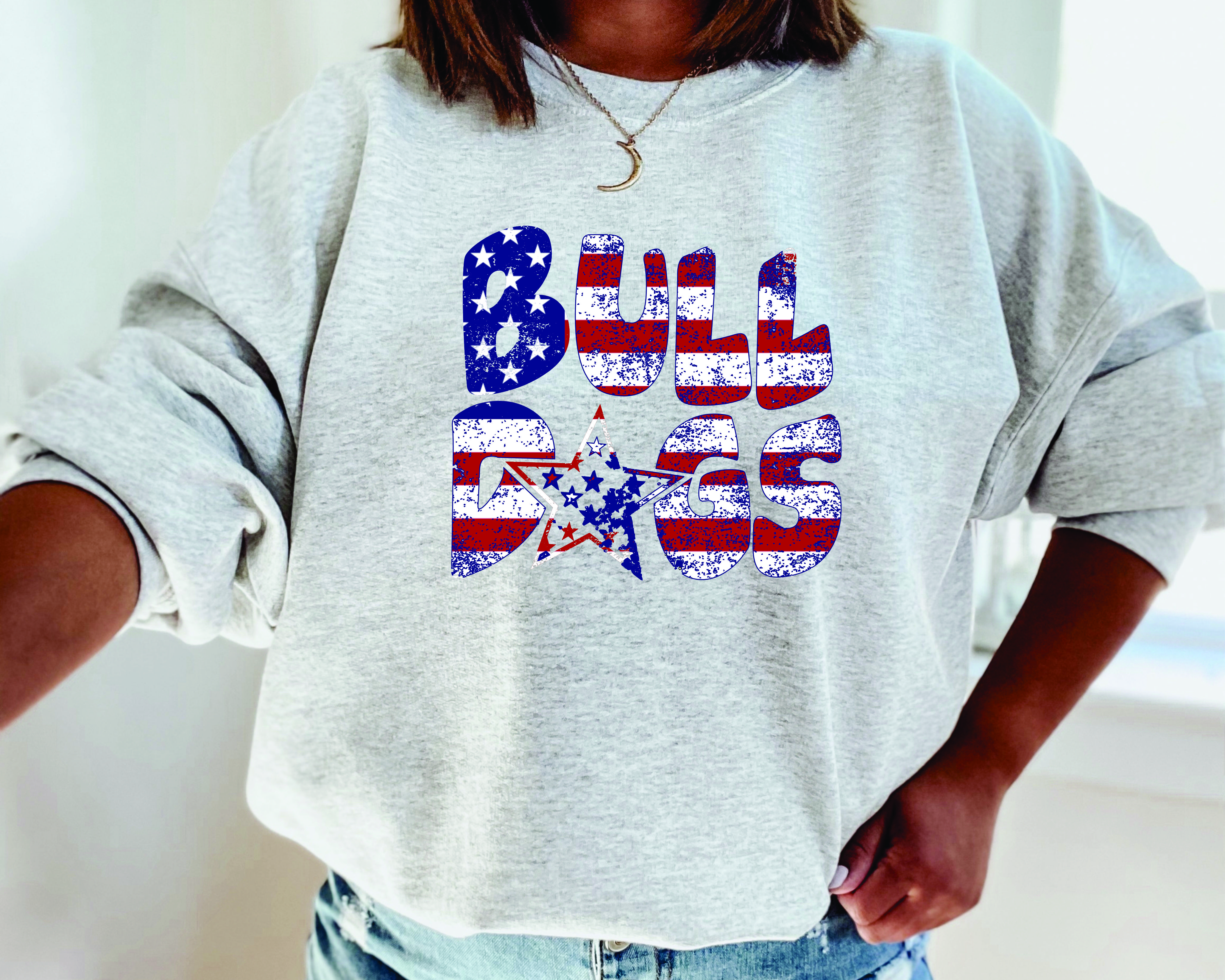 Bulldogs Flag Crew Neck Sweatshirt. Made of ultra-soft cotton and featuring a relaxed fit, this cozy crewneck sweatshirt is the perfect game night attire.