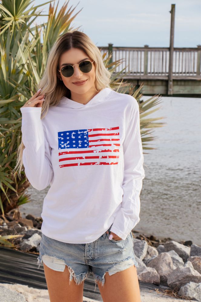 Distressed Flag Comfort Colors Heavyweight Long Sleeve Hooded Tee