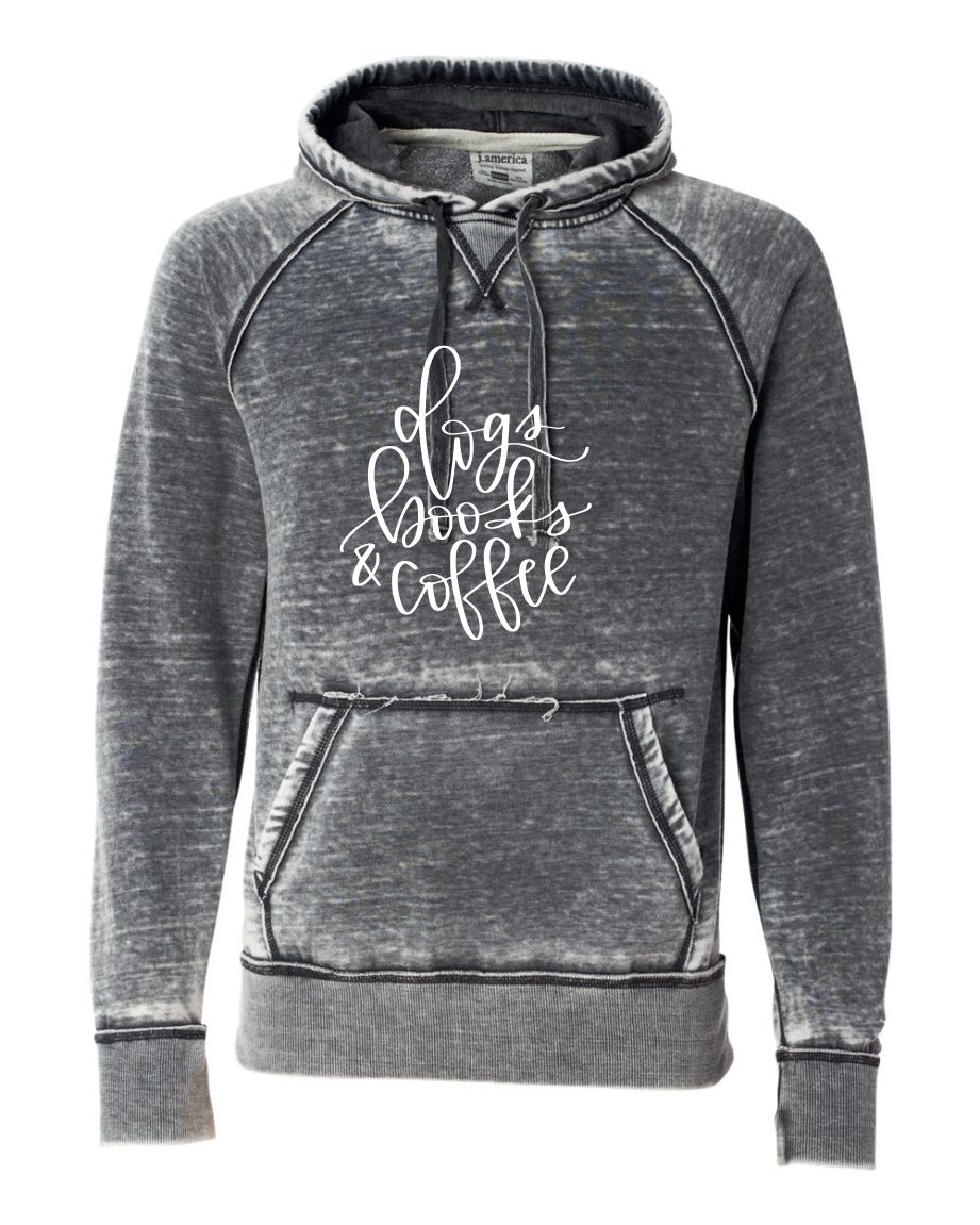 Dogs Books & Coffee on our favorite soft vintage hoodie!