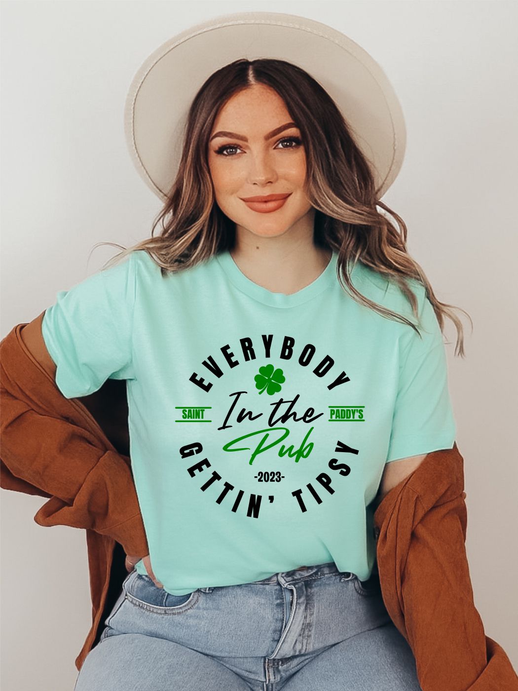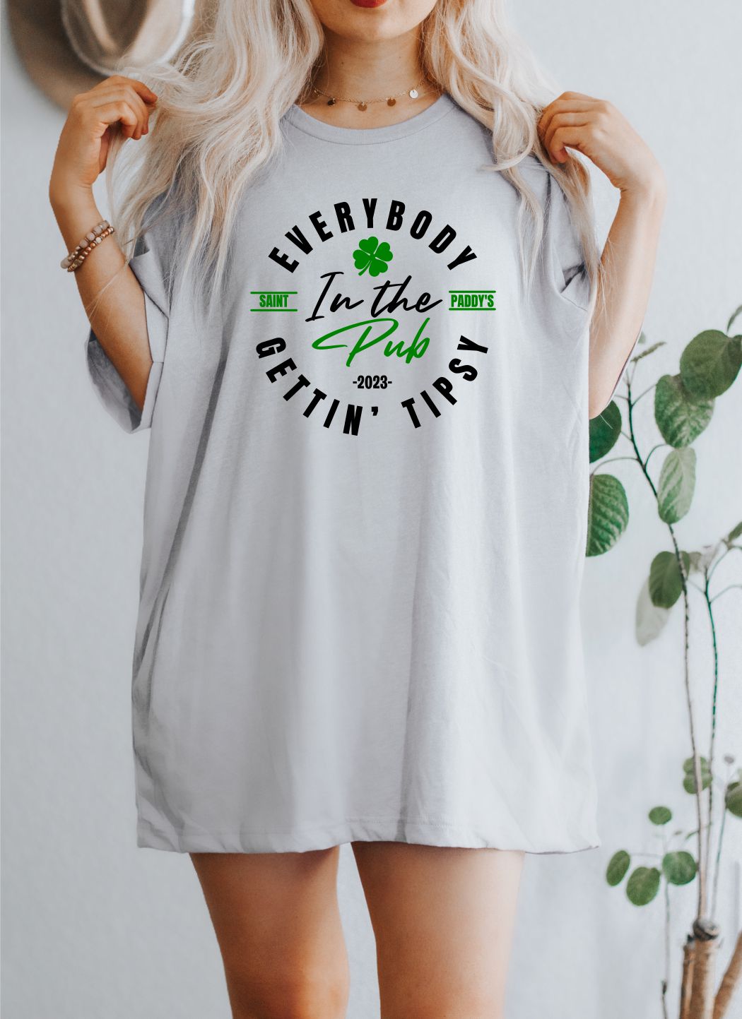 Everybody in the Pub Gettin' Tipsy St Patricks Day Crew Neck Tee
