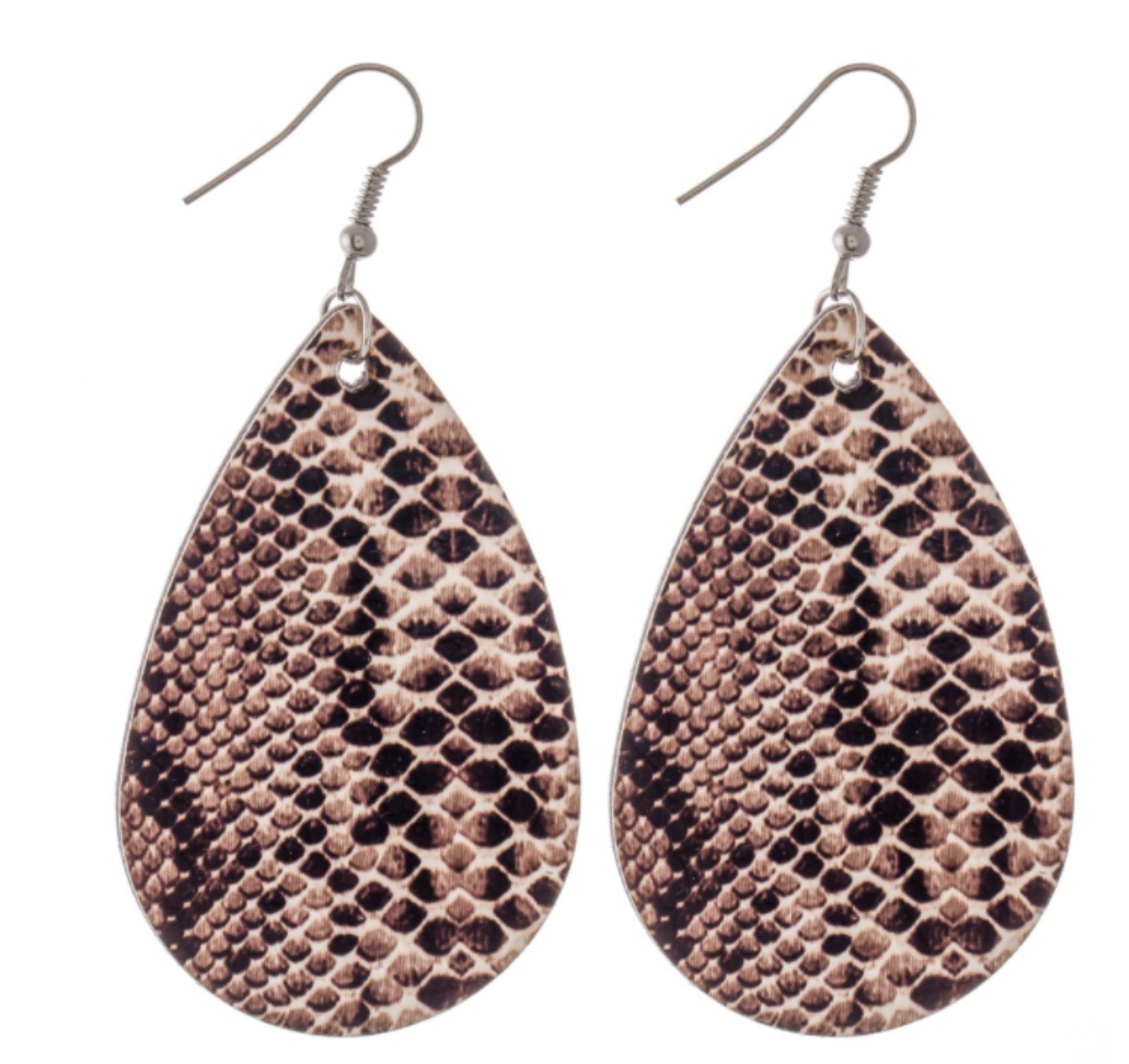 We can't get enough of these cute snakeskin earrings! Featuring a classic teardrop shape, these can instantly add some fun to your outfit!