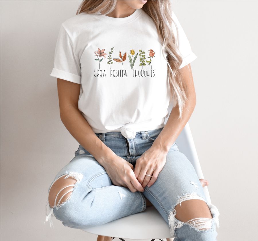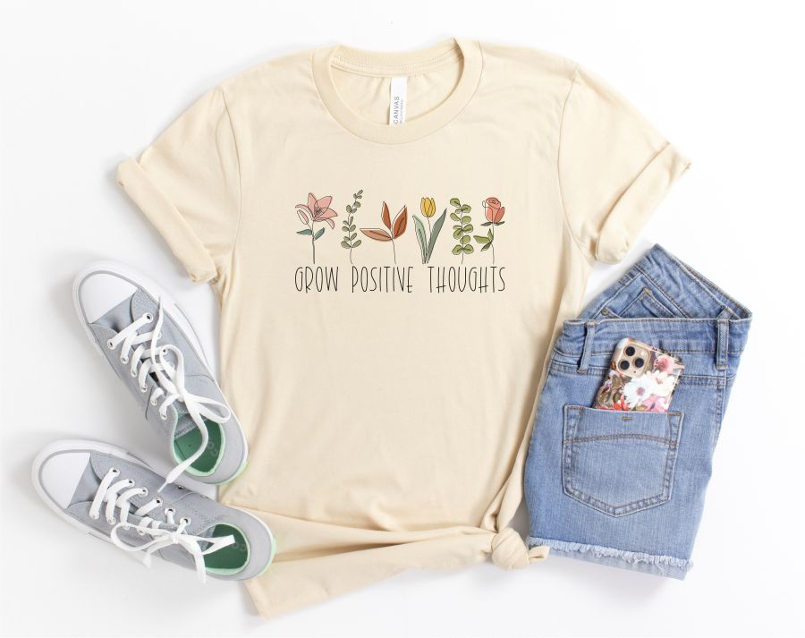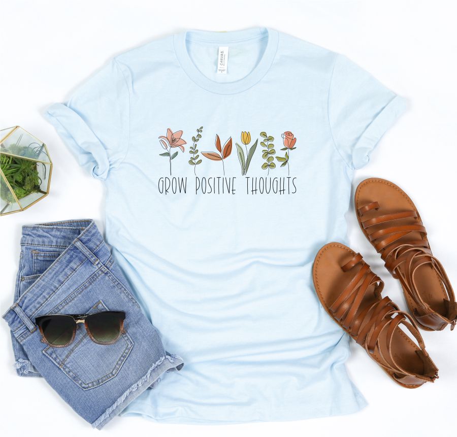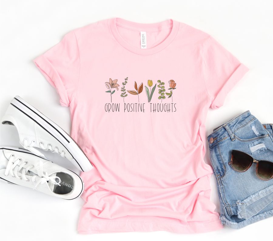 Product Description Grow Positive Thoughts Crewneck Tee 100% combed and ring spun cotton Bella Canvas Unisex Tee