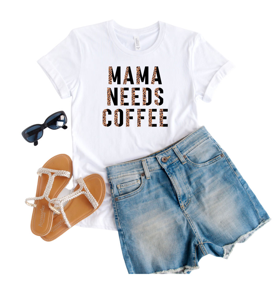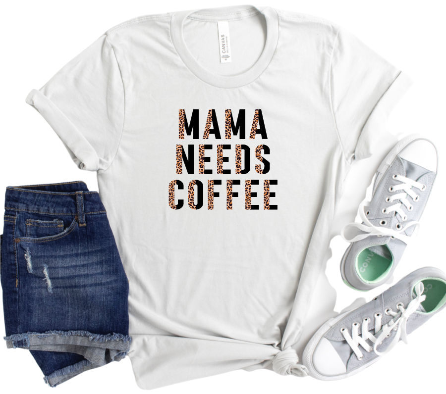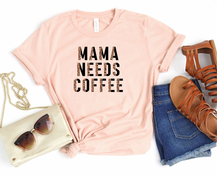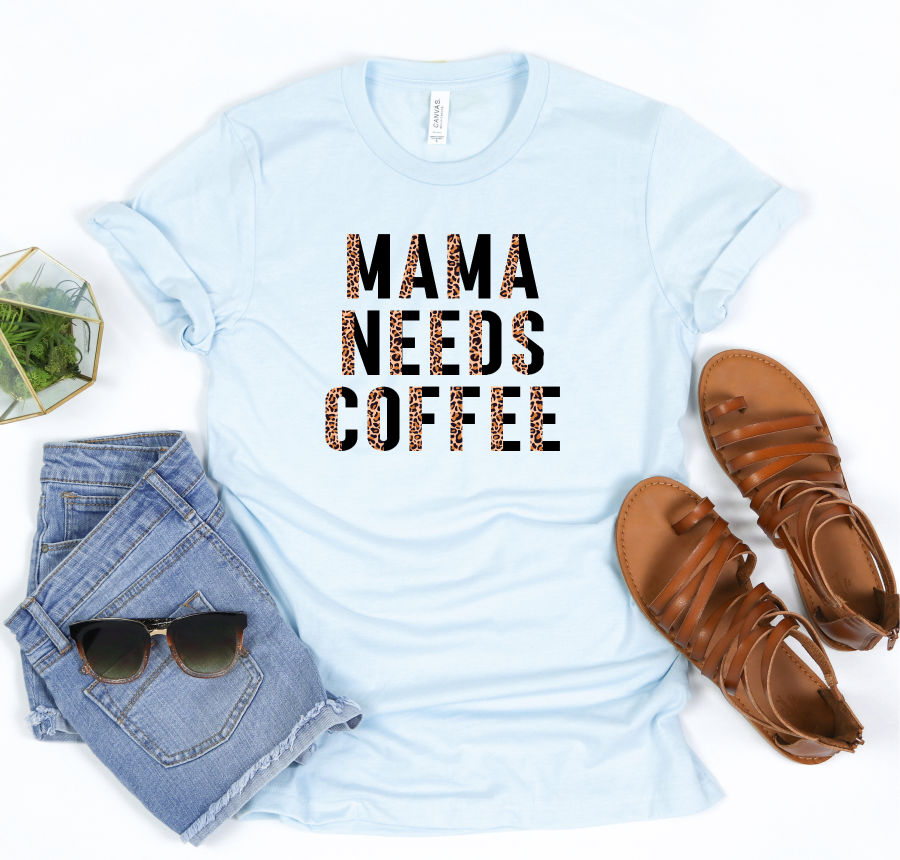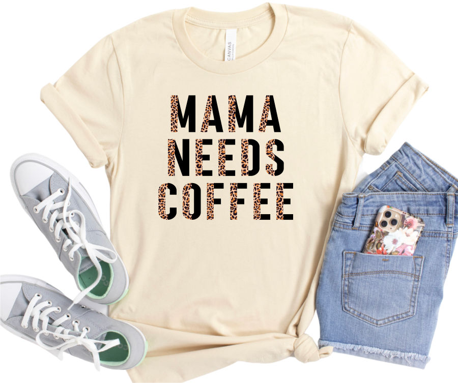 Product Description Mama Needs a Coffee Leopard Colorful Crewneck Tee 100% combed and ring spun cotton Unisex sizing