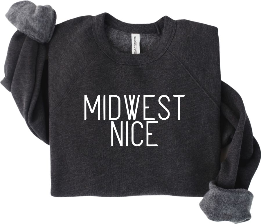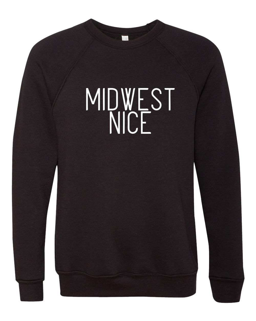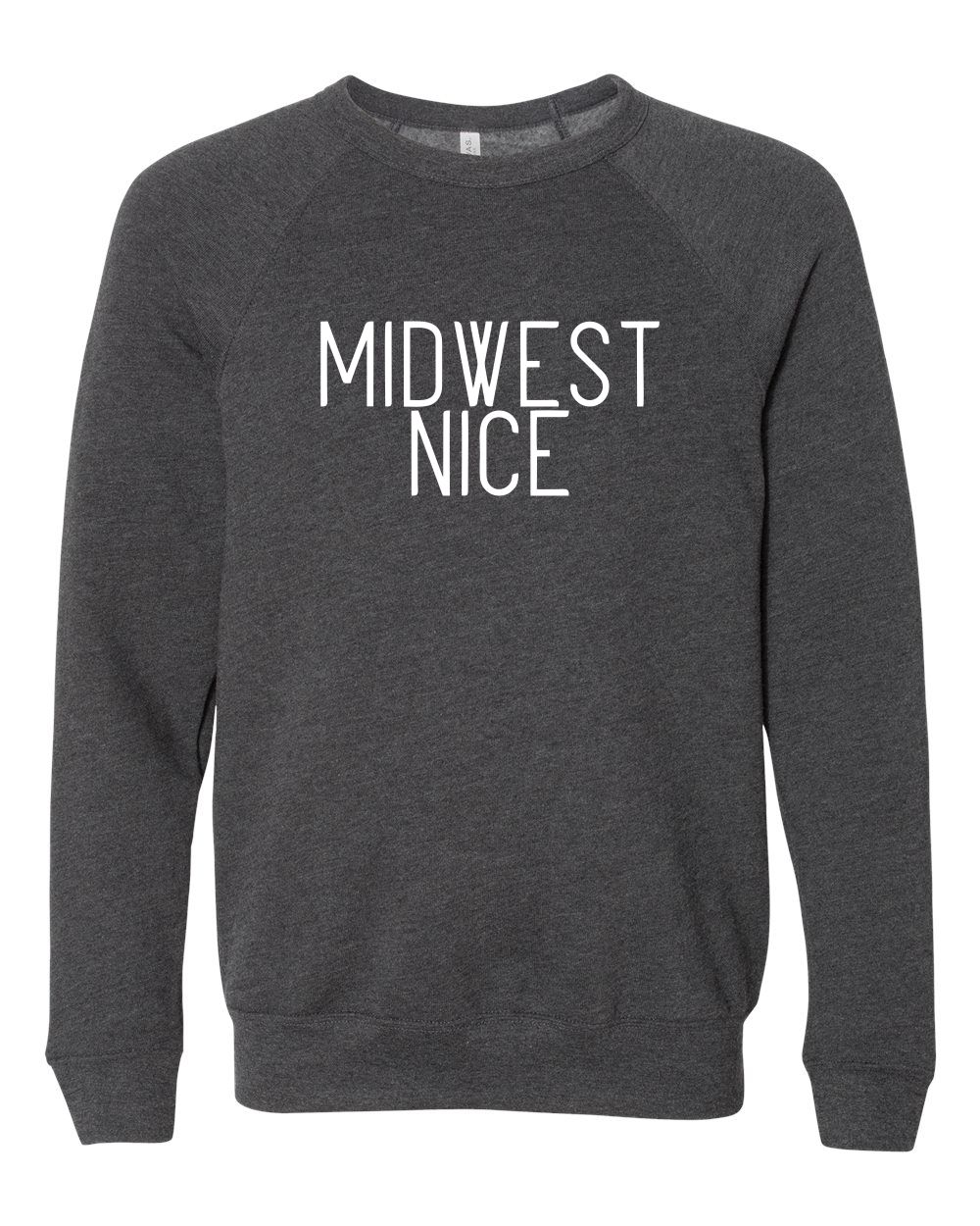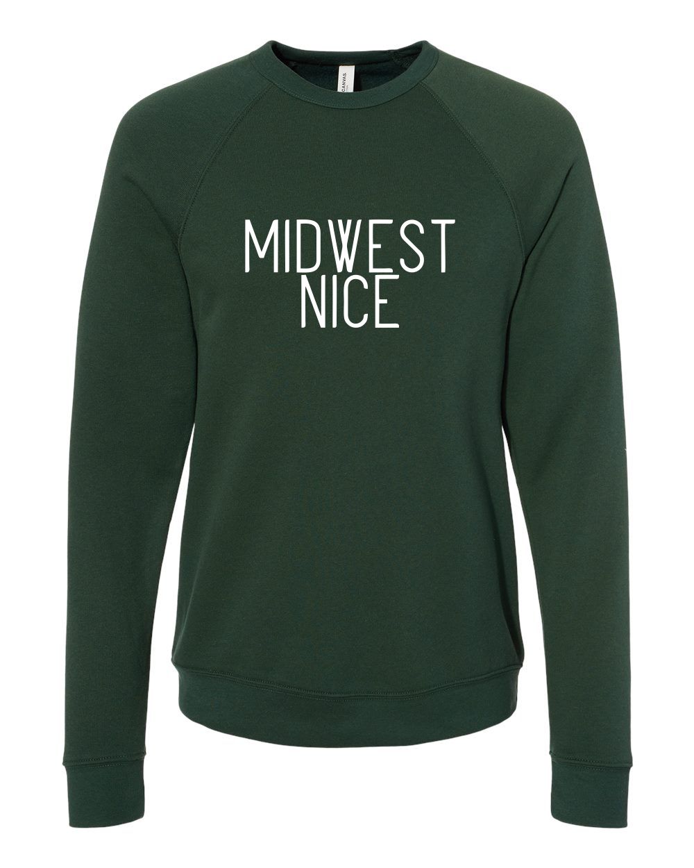 Midwest Nice (White Print) Bella Canvas Crewneck Sweatshirt