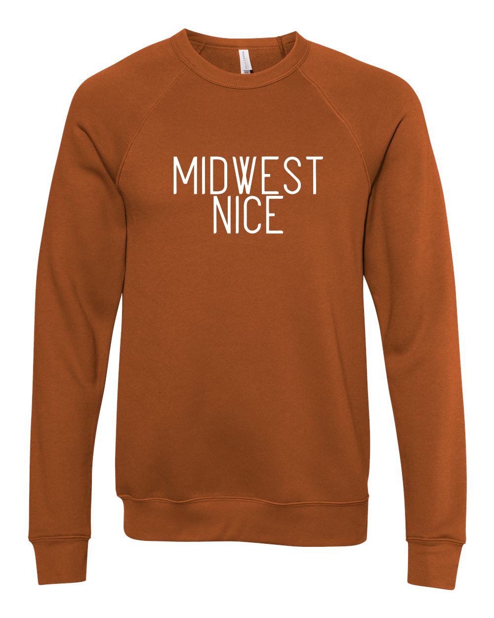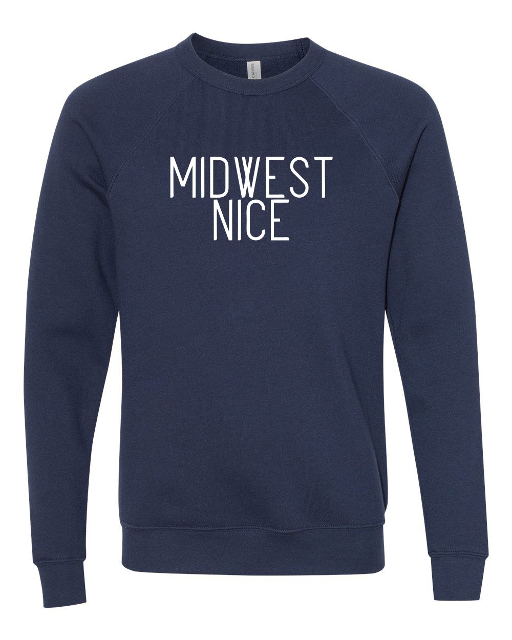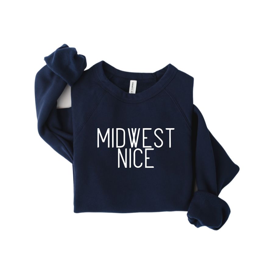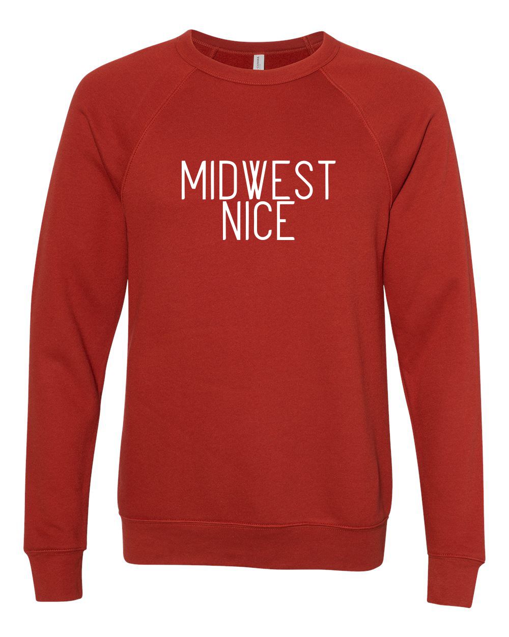 Midwest Nice (White Print) Bella Canvas Crewneck Sweatshirt