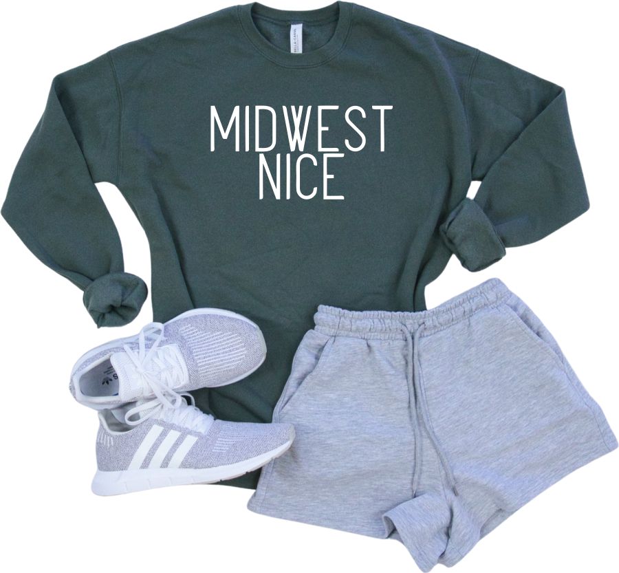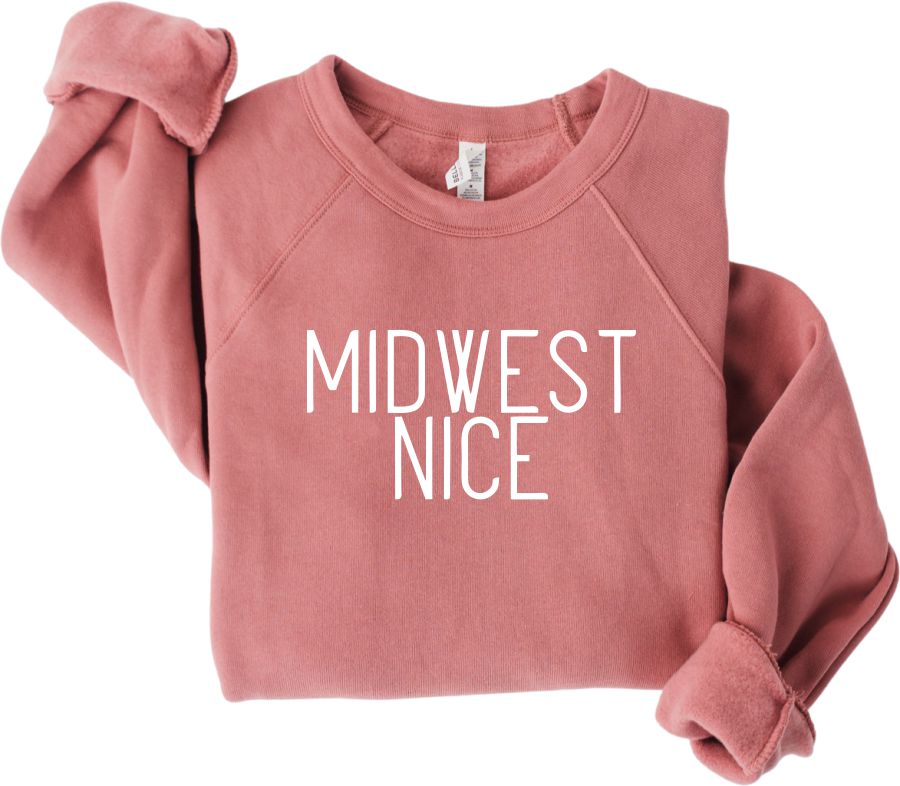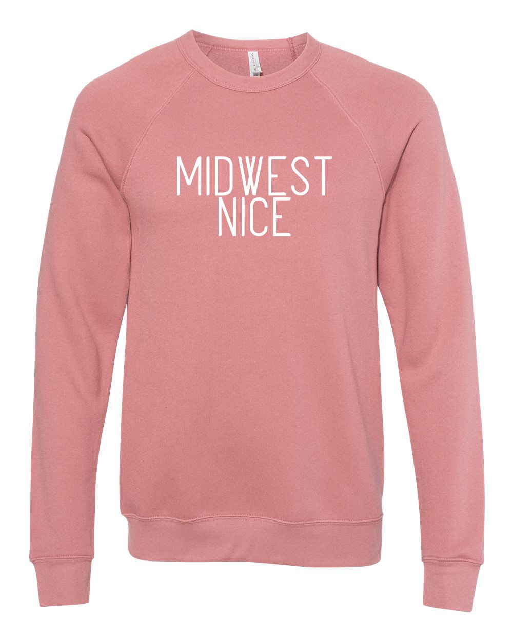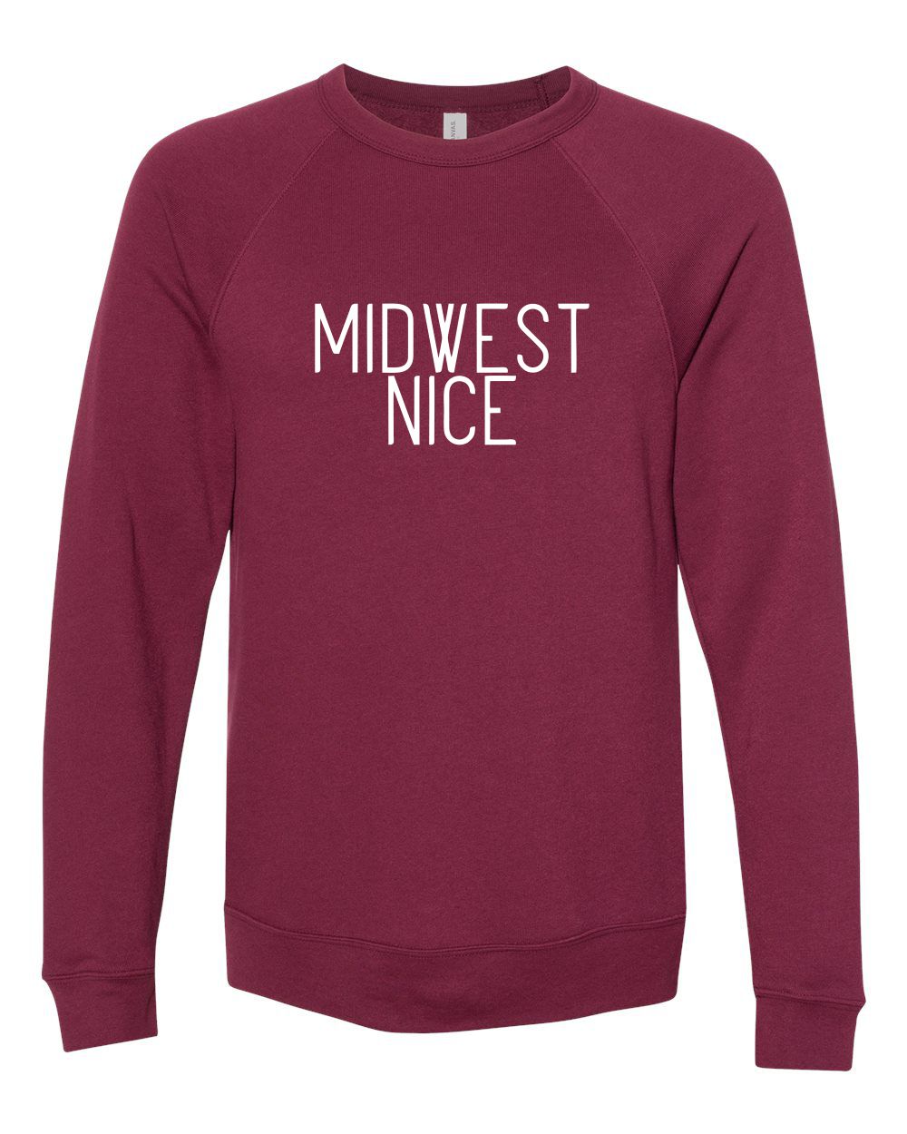 Midwest Nice (White Print) Bella Canvas Crewneck Sweatshirt