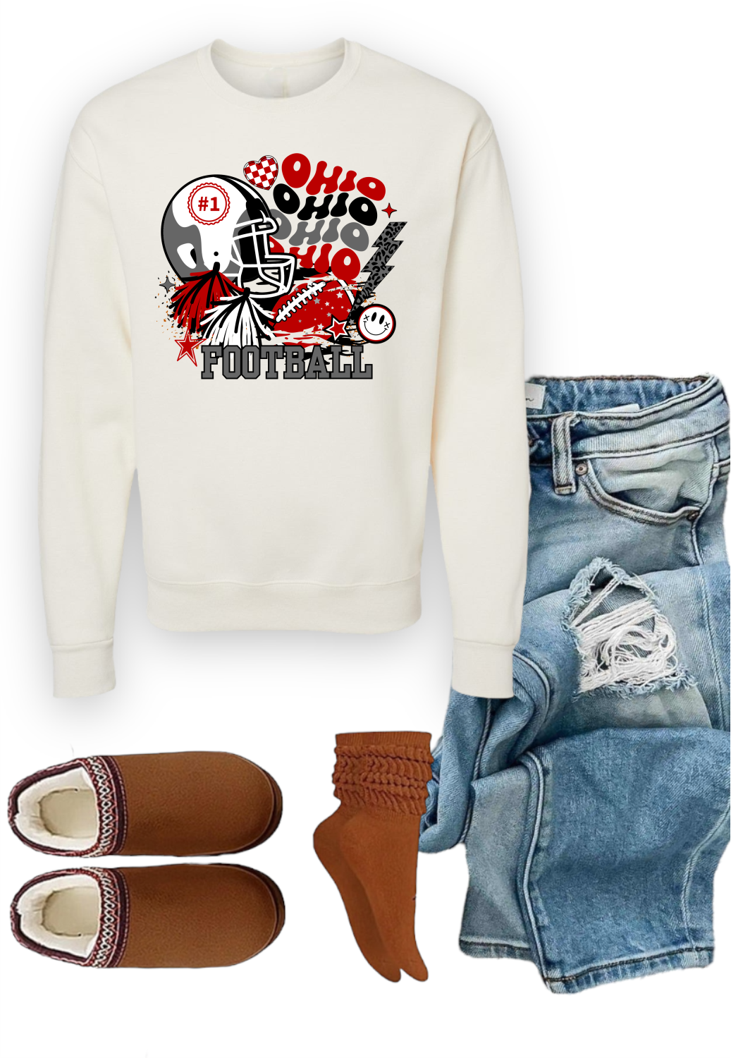 Choose Options State of Ohio Football Game Day Crewneck Sweatshirt MSRP: Was: Now: $31.00 State of Ohio Football Game Day Cozy Crew Neck Sweatshirt 8.0 oz. pre-shrunk fleeceGrey - 49% cotto…