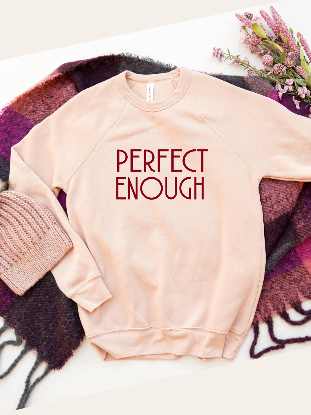 Ocean & 7th fam, meet your new favorite cozy piece-the "Perfect Enough" sweatshirt, printed on premium Bella Canvas fabric that's as soft as it is inspiring.