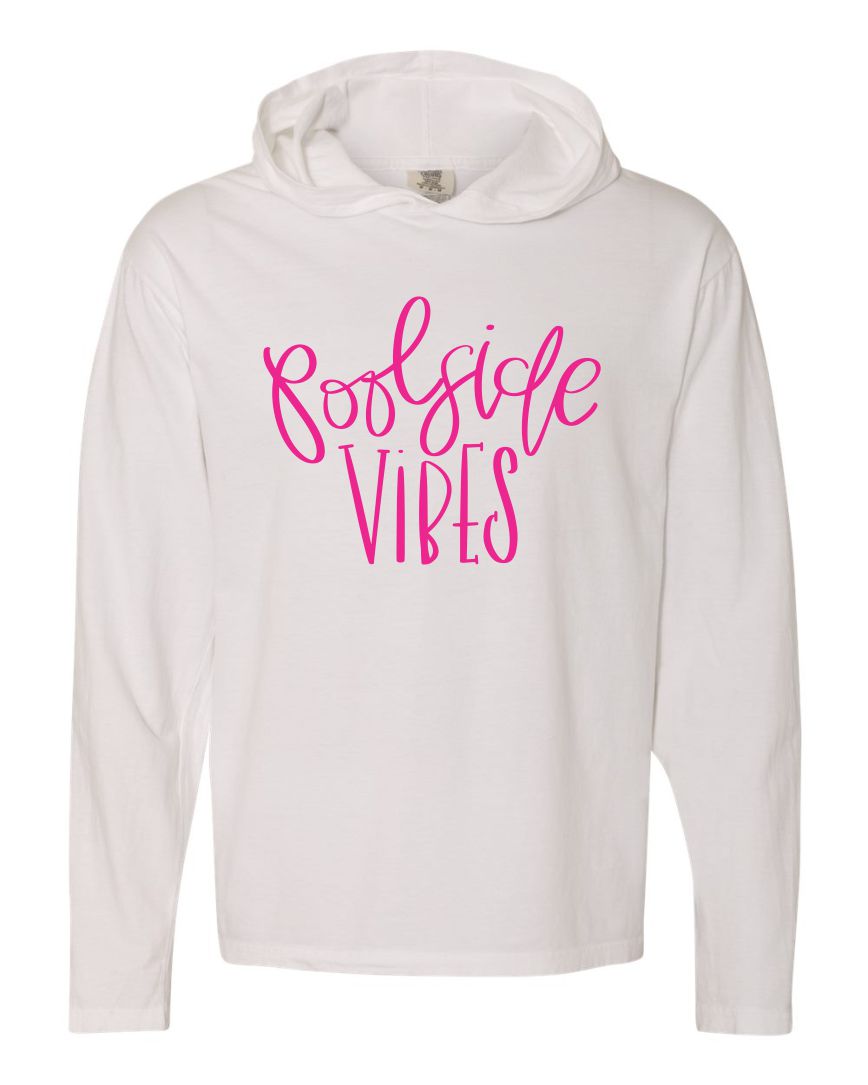 Poolside Vibes Pink Print Comfort Colors Heavyweight Long Sleeve Hooded Tee