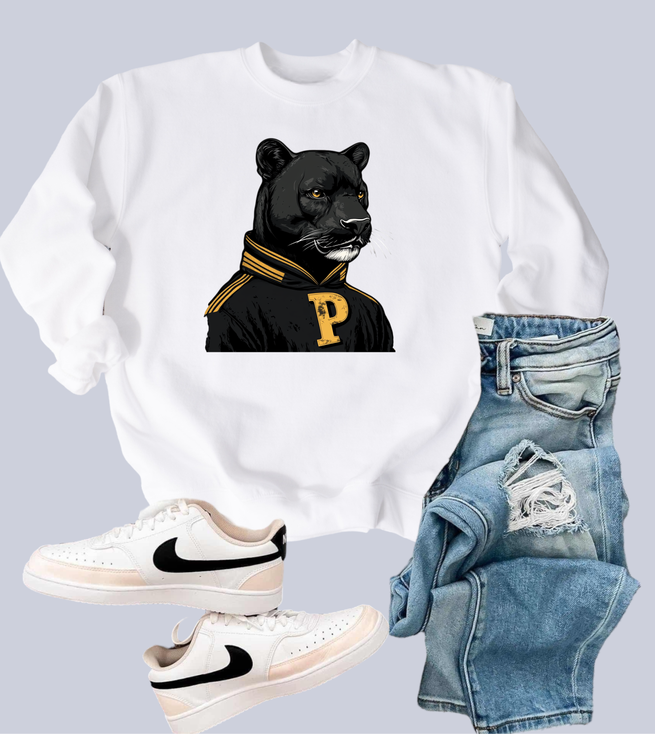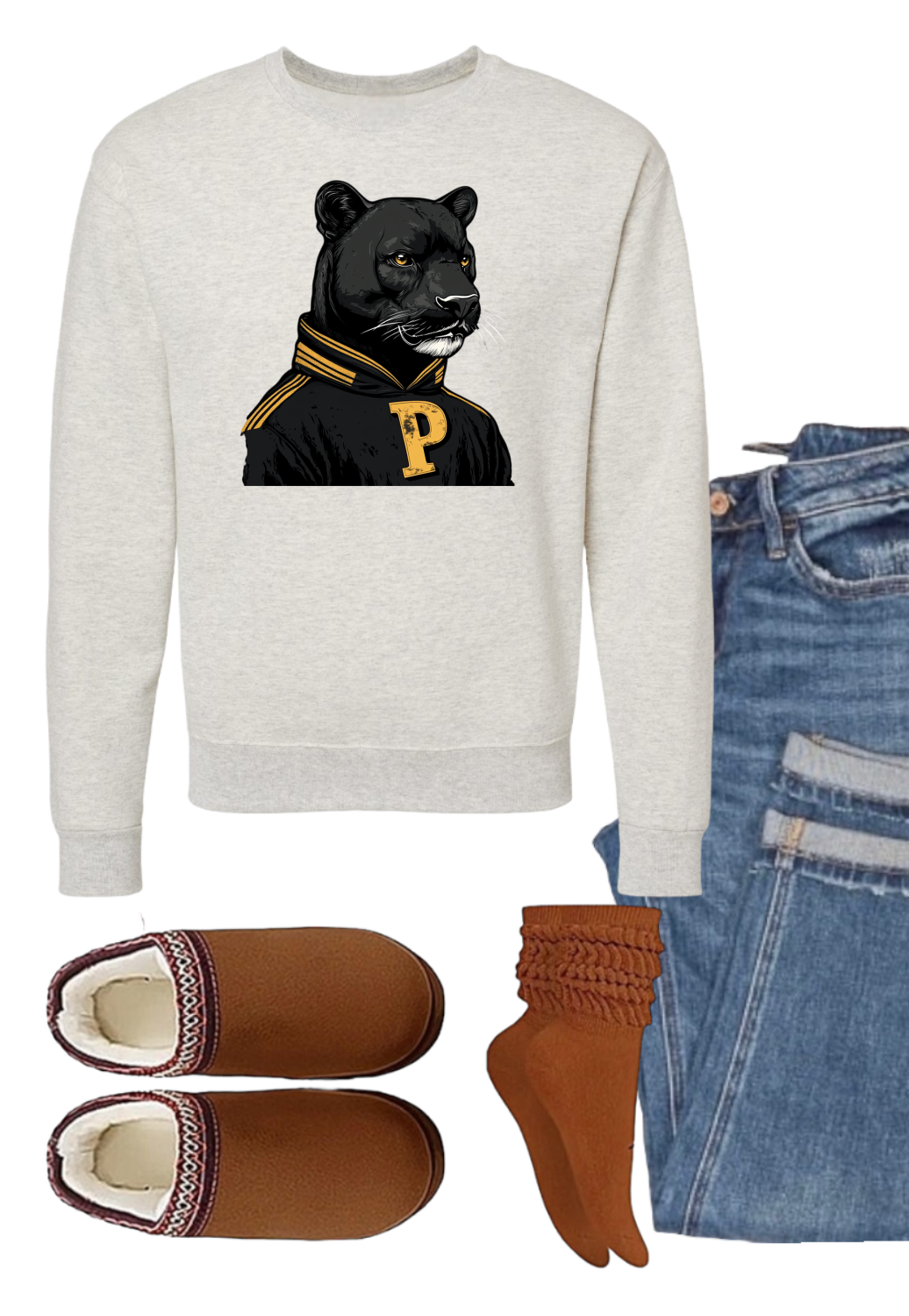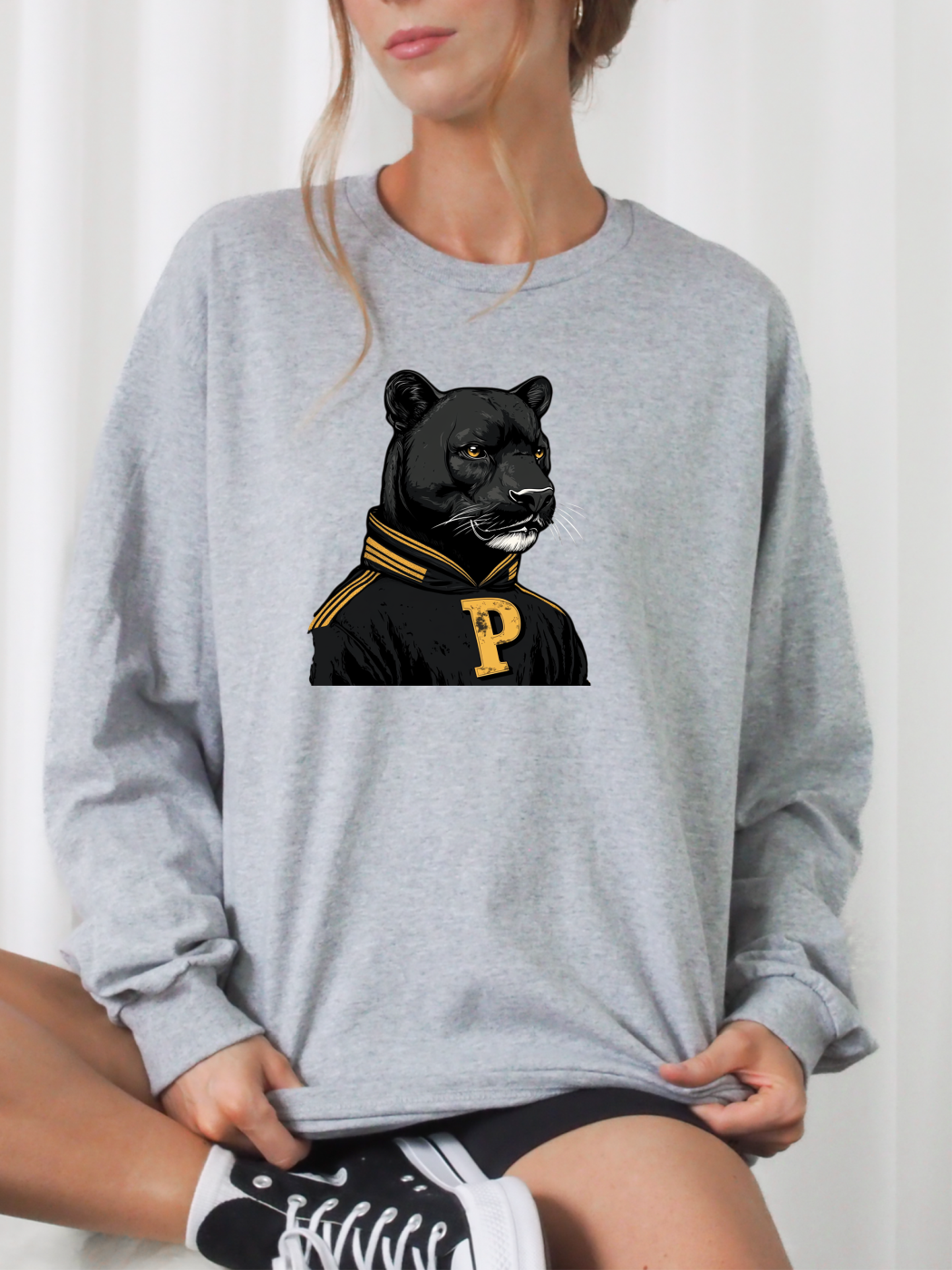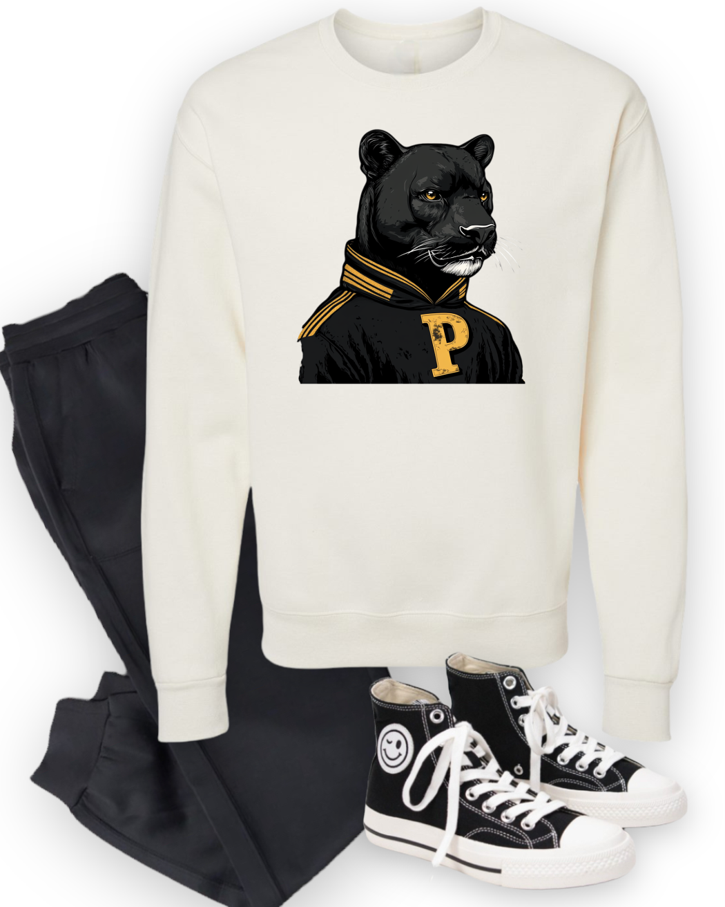 Classic, bold, and built for champions—this Old-School Athletic Panther BasketBall Sweatshirt brings vintage varsity vibes to your everyday style. Featuring a fierce panther mascot in a retro letterman sweater, this sweatshirt is a nod to old-school sports pride with a modern, cozy fit.