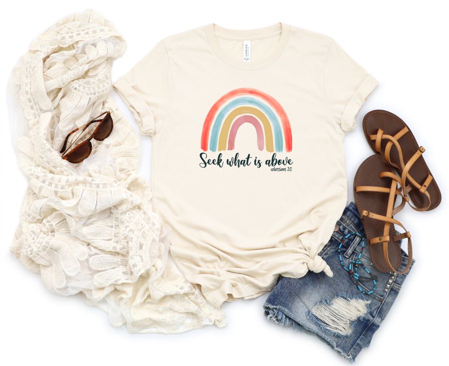 Product Description Seek What Is Above Graphic Tee 100% combed and ring spun cotton Bella Canvas Unisex Tee