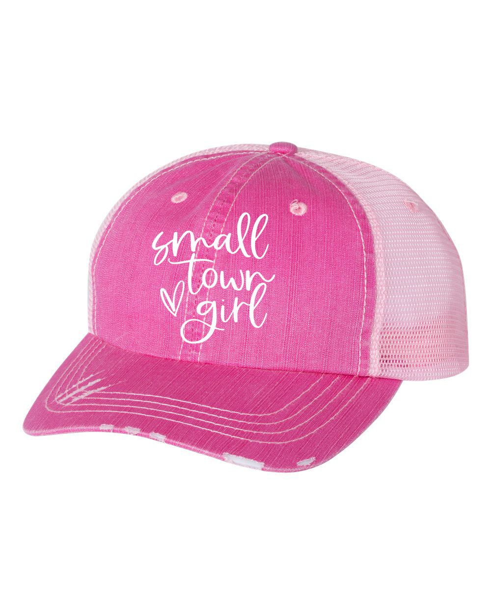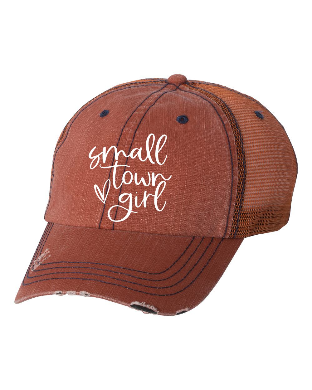Small Town Girl With Heart Embroidered Trucker Hat