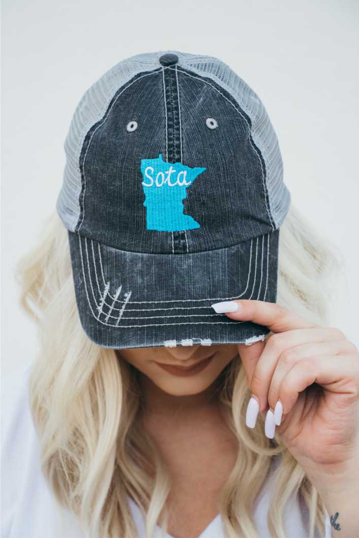 Sota in the State of Minnesota in Blue Embroidered Trucker Hat