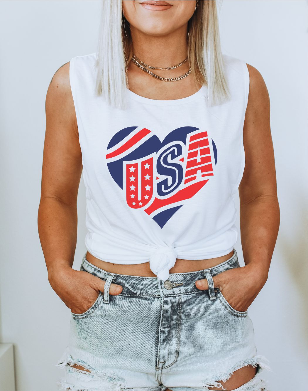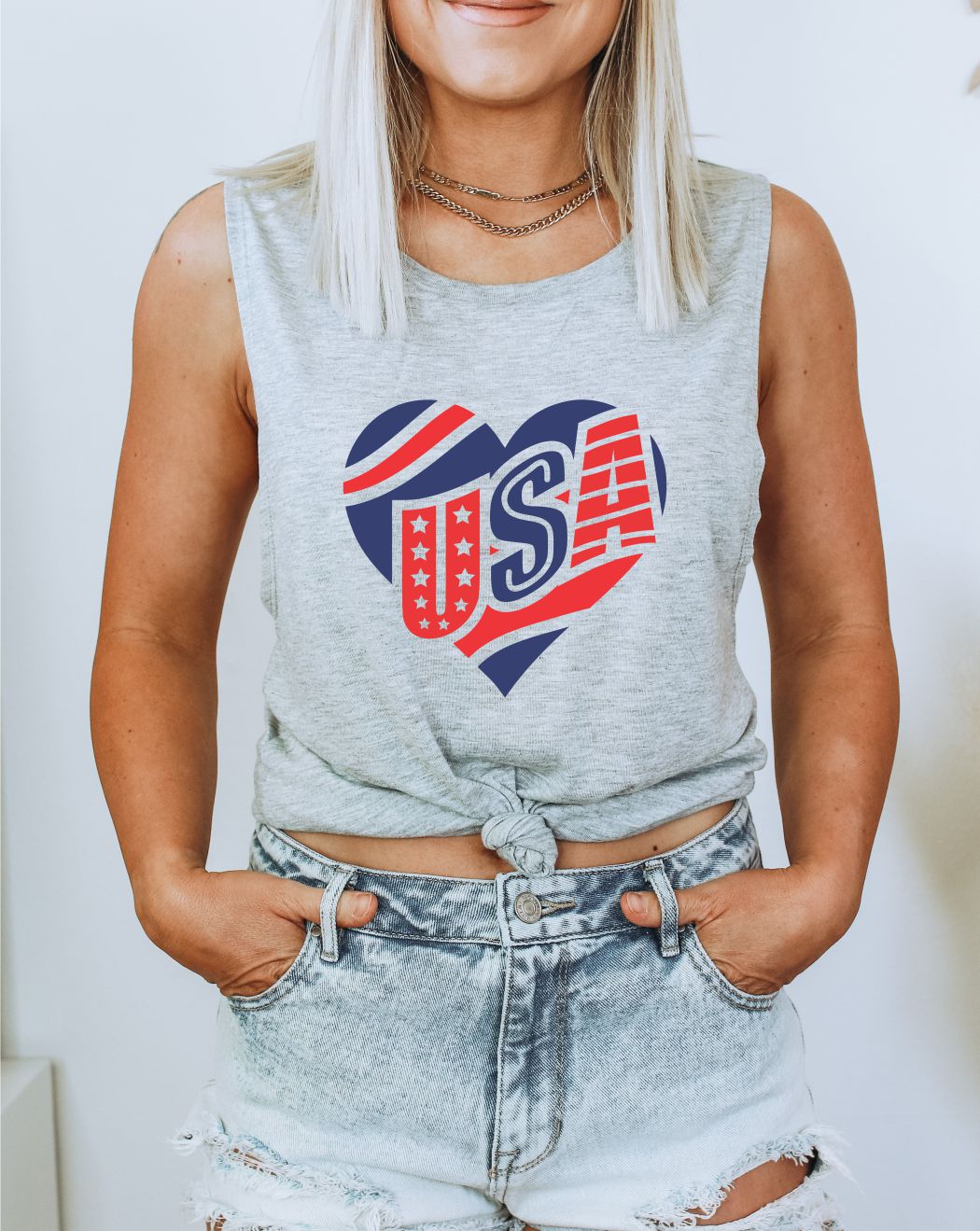 USA Heart July 4th Patriotic Graphic #4thofJuly Muscle Tank