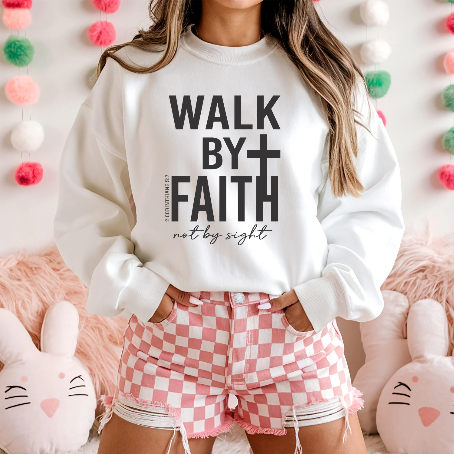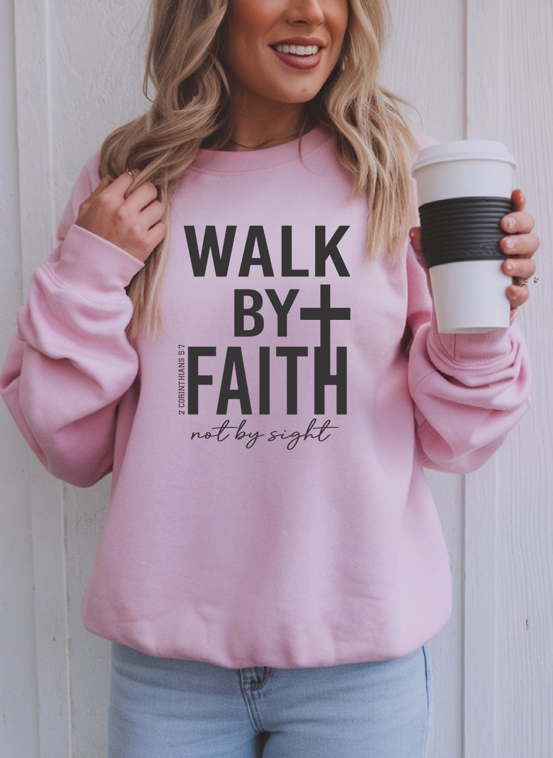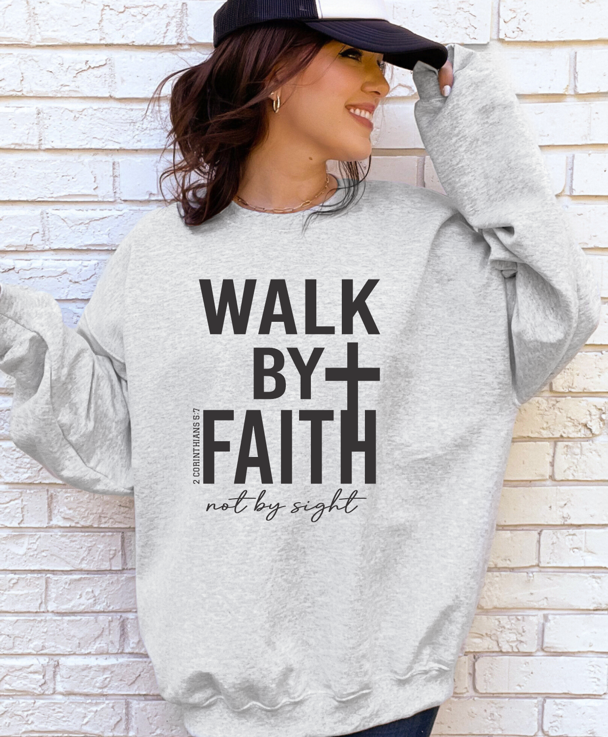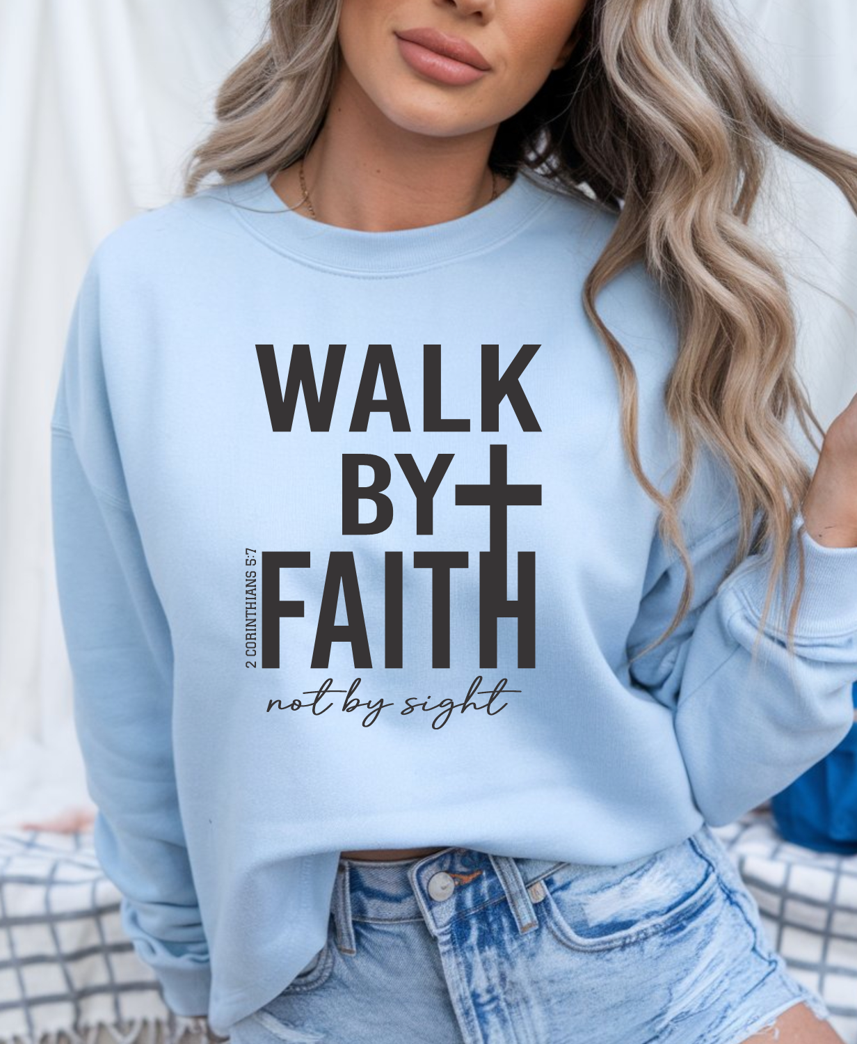 Walk By Faith Crew Neck Sweatshirt, Faith Based Sweatshirt