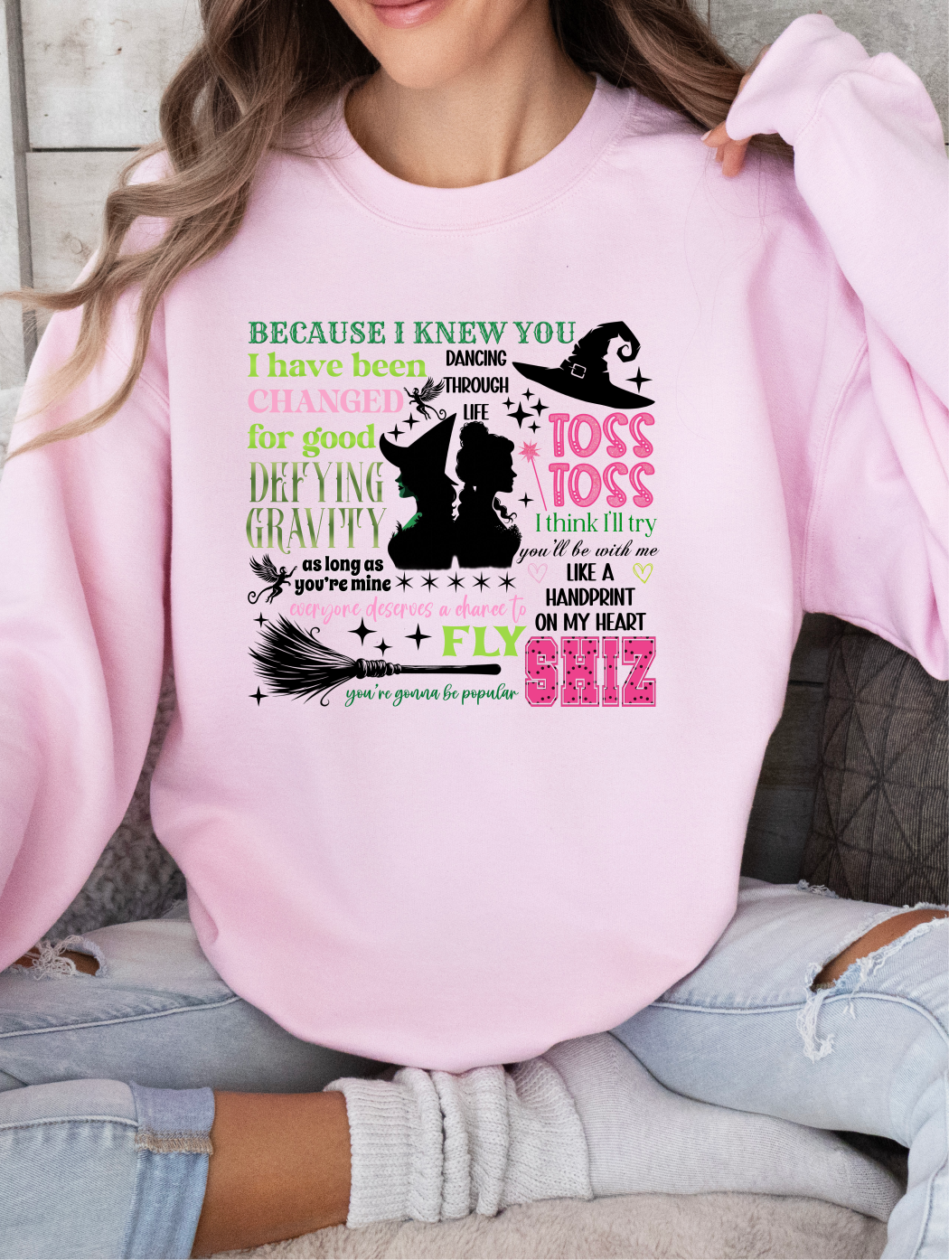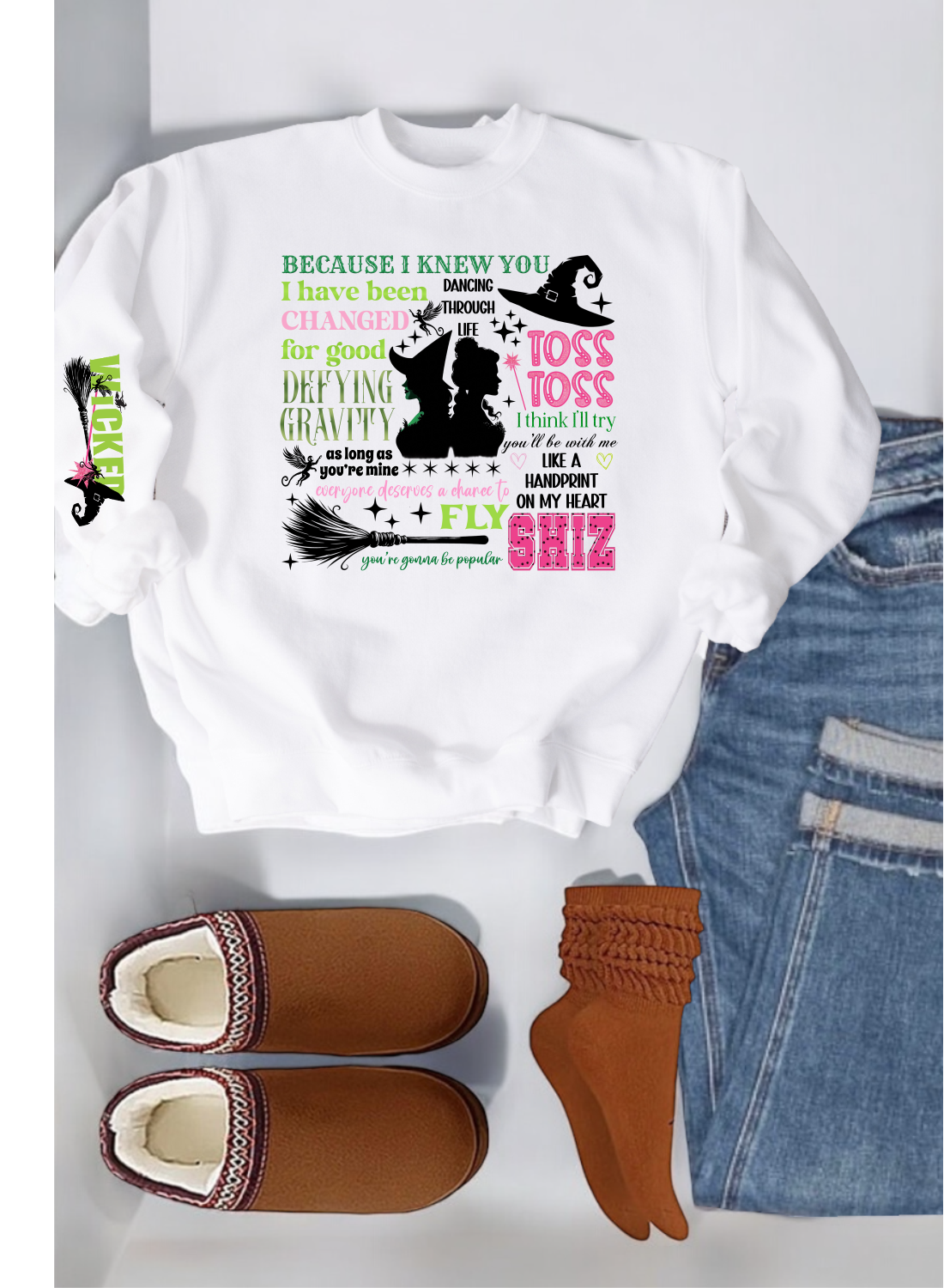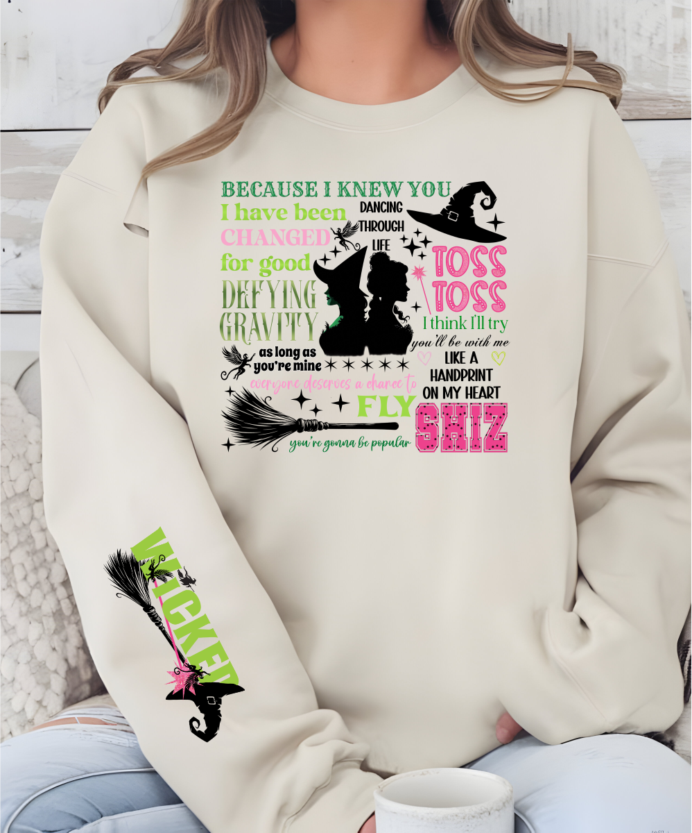 Product Description Witch Songs Graphic Crewneck Sweatshirt All Colors have a sleeve print 50% cotton / 50% polyester
